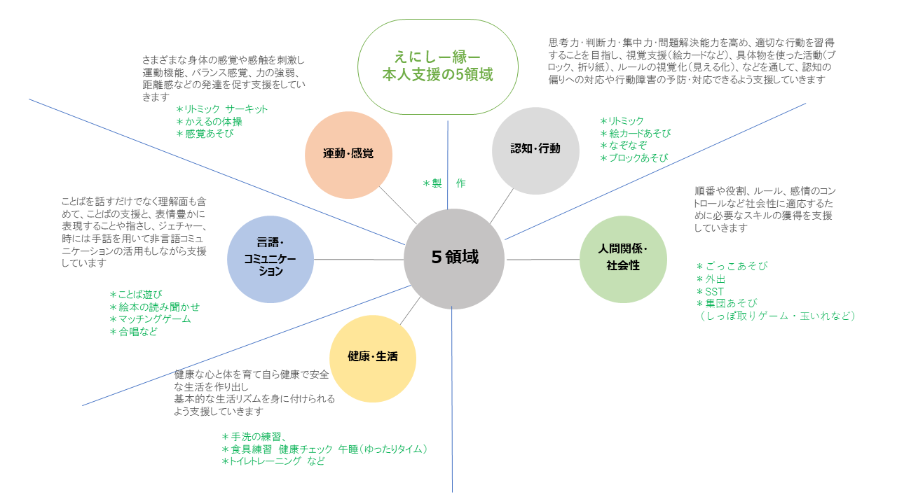 その為に、療育を必要とするさまざまな人たちとのご縁を大切にし、自立に必要な支援を通してお子様とご家族に笑顔が絶えない地域社会を目指します。