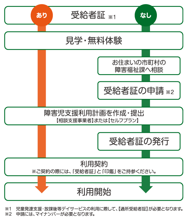 児童発達支援*・放課後等デイサービスは市区町村発行の受給者証があれば9割が自治体負担となり、1割が自己負担となる制度です。